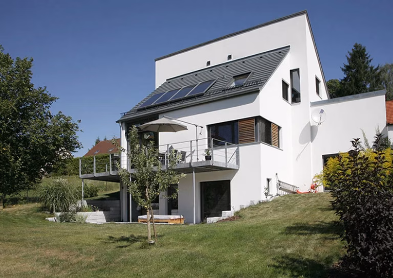 Das relativ schmale Hanggrundstück bestimmt die Ausprägung dieses Hauses: